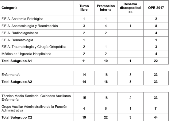 Estas plazas corresponden a 9 categorías profesionales, distribuidas de la siguiente manera: