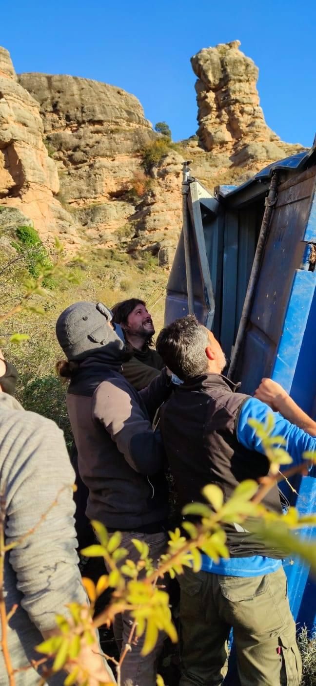 El fuerte viente de los últimos días se ha hecho notar en Viguera, que ha conseguido volcar una caseta de obra de más de 800 kilos y anclada de una esquina, que se ha caído después por la ladera.