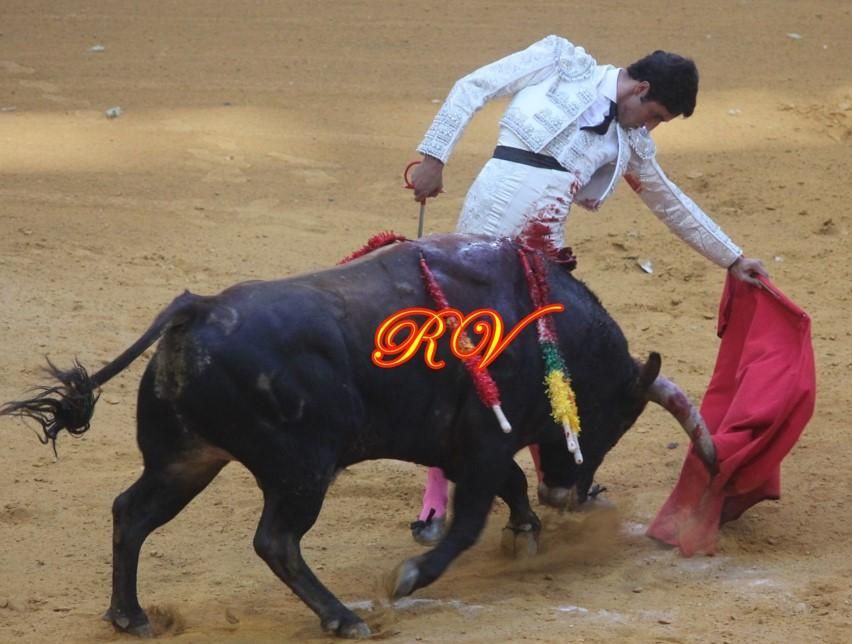 Y saltó el quinto, que dicen que no hay uno malo, y las ilusiones se truncaron en el recibo capotero, que se apagó el burel. Meritoria faena ante un astado protestón y que no humillaba. Embestidas de manso y que si le obligaba tiraba un derrote feo por arriba. Feísima cogida tras perderle la cara al de Los Ronceles y en tablas. Dolorido se levantó para pasaportar a su oponente de una media. Palmas para el torero.