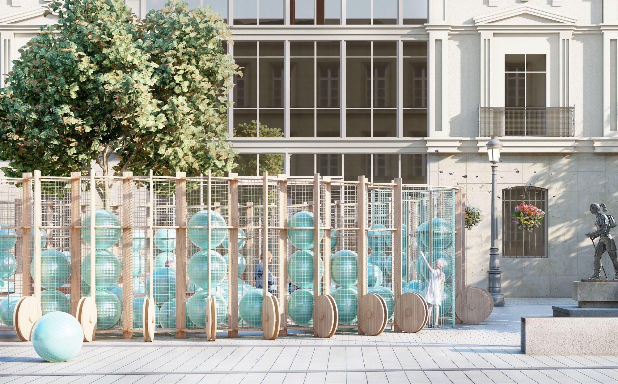 En el primer caso, PUL _ Piscina Urbana de Logroño, de Meii estudio (Elvira Carrión, Jose Mª Mateo), Clara Torregrosa, Gabriel Millán / España. A diferencia de otras piscinas, PUL es versátil, en ella las normas no están escritas y lo que se busca es la espontaneidad y libre apropiación de su espacio interior. Esta piscina efímera se ubicará en la Plaza de las Escuelas Trevijano, integrándose con los elementos existentes y rodeando al gran árbol central.