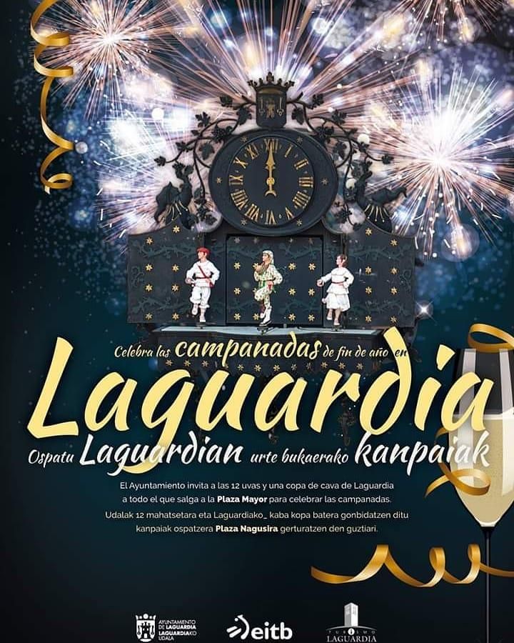 Laguardia ha sido el municipio elegido por Euskal Telebista para retransmitir las campanadas de Nochevieja de este año. El programa en directo será conducido por Sara Gandara, Mikel Pagadi y Zuhaitz Gurrutxaga y se emitirá simultáneamente en ETB1 y ETB2.