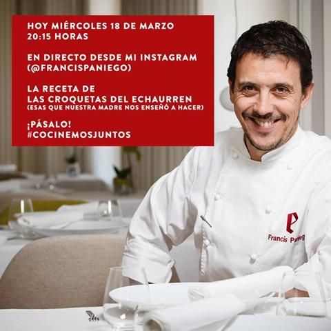 Francis Paniego se ha sumado al movimiento de muchos cocineros para enseñar recetas a través de vídeos en redes sociales para que podamos aprender a cocinar durante estos días de aislamiento en casa.