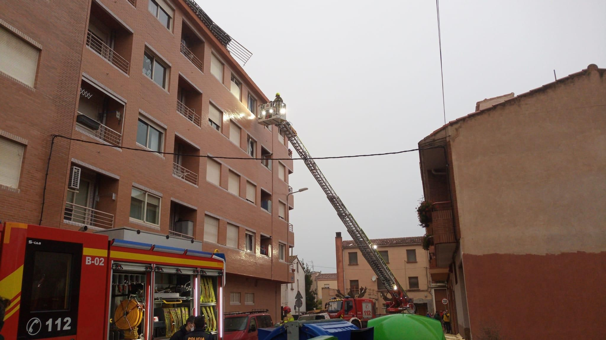 Tras participar en las labores de rescate de los vecinos y vecinas, el Cuerpo de Bomberos de Logroño realiza en estos momentos trabajos de desescombro en los cuatro áticos afectados por la explosión.