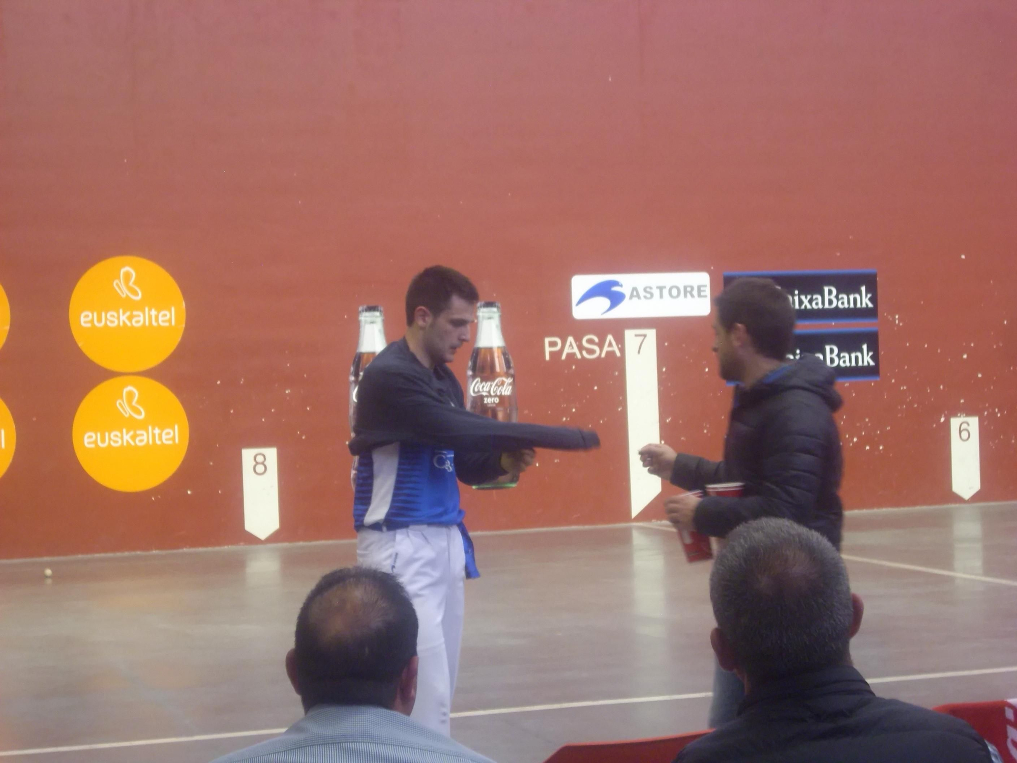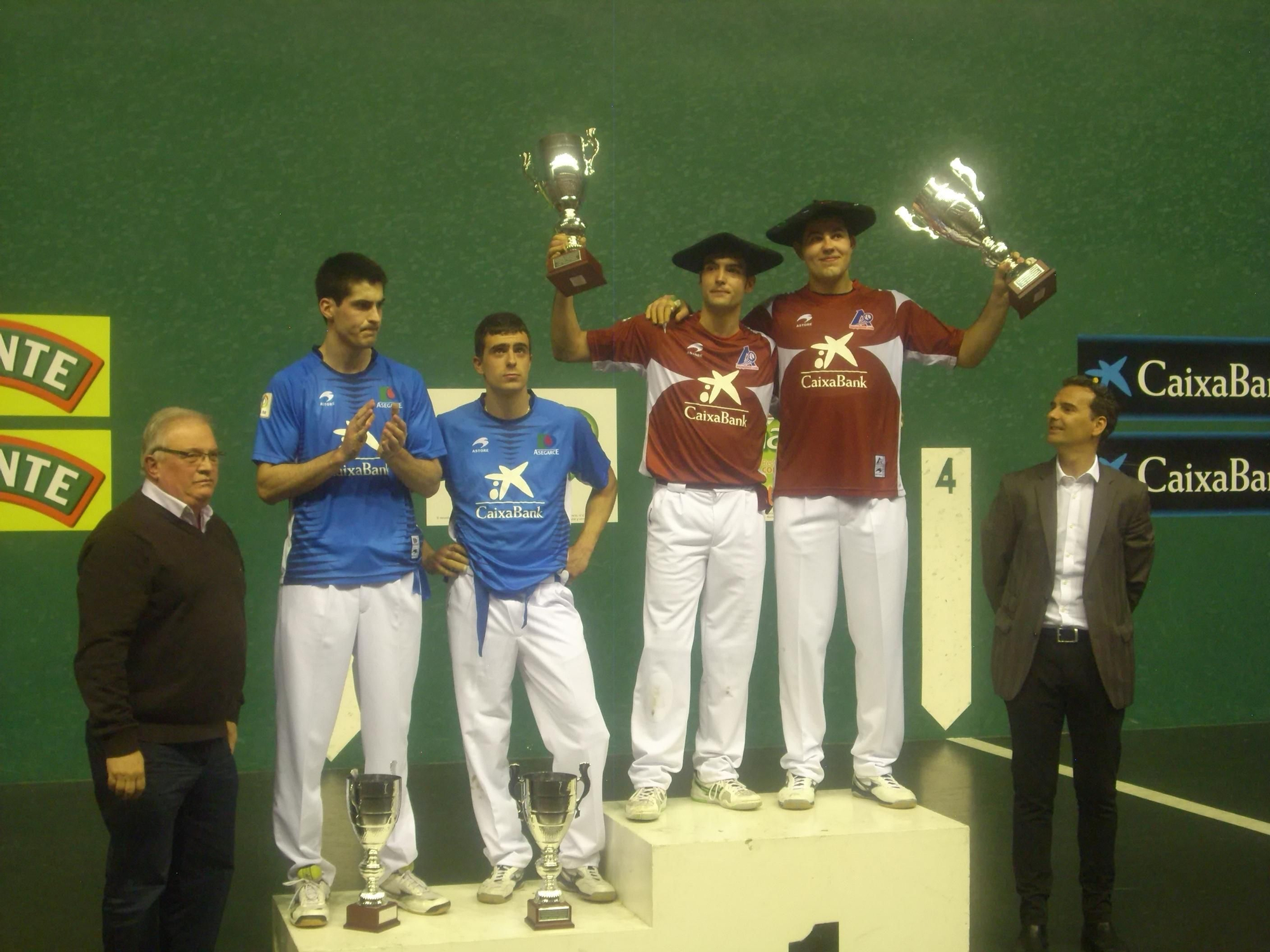 Saque de Agirre, 1 a 0; Dos pelotazos de Larumbe, 3 a 0; Gancho de Agirre, 4 a 0. Falla Agirre, Gorka y Tolosa cambian de pelota, comienza a jugar el de Ezcaray, y se acabó el partido. Este es el resumen rápido de la final del parejas de “promoción”*.