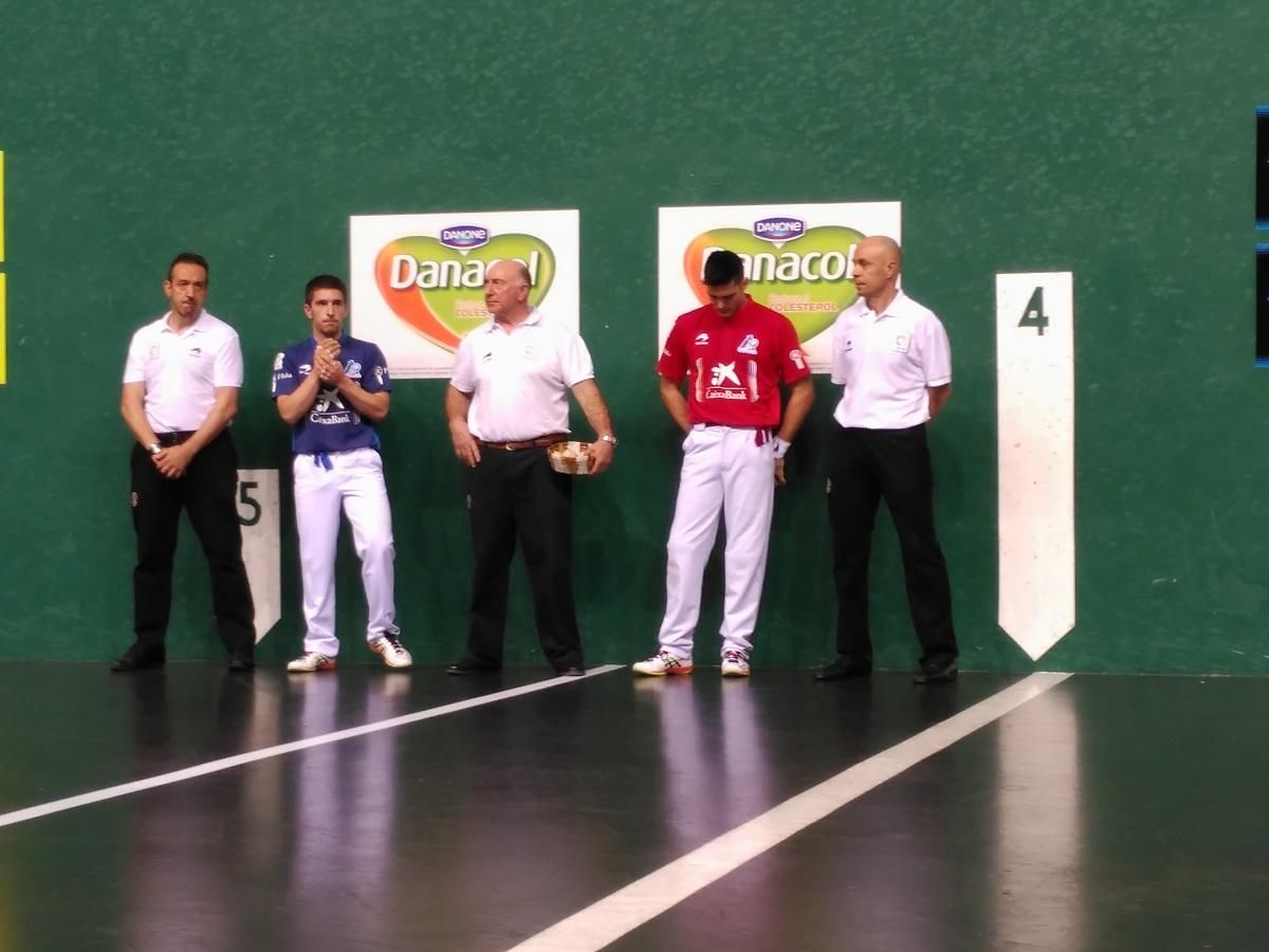 Ni siquiera la calma que Goyo Hernando intentaba transmitirle desde la silla tuvo efectos en el sosiego de nuestro paisano, y eso, a pesar de que en tres ocasiones el de Ezcaray estuvo a punto de consumar la remontada (10-12, 12-16 y 14-16). Para evitarlo, Aitor Mendizabal hizo todo bien, corrió a por todas las pelotas, suplió su carencia de golpe con remates habilidosos y, sobre todo, evitó que Gorka golpeara cómodamente la pelota echándole continuamente la bola a los pies, sin que el riojano pudiera tampoco buscar el sotamano para pasar a dominar. Pero además, y como suele suceder cuando uno tiene una mala tarde, el guipuzcoano tuvo la suerte de cara: 3 escapadas cayeron encima de la chapa, e incluso el juez le echó una manita al no ver una clara chapa en el 16 a 12.