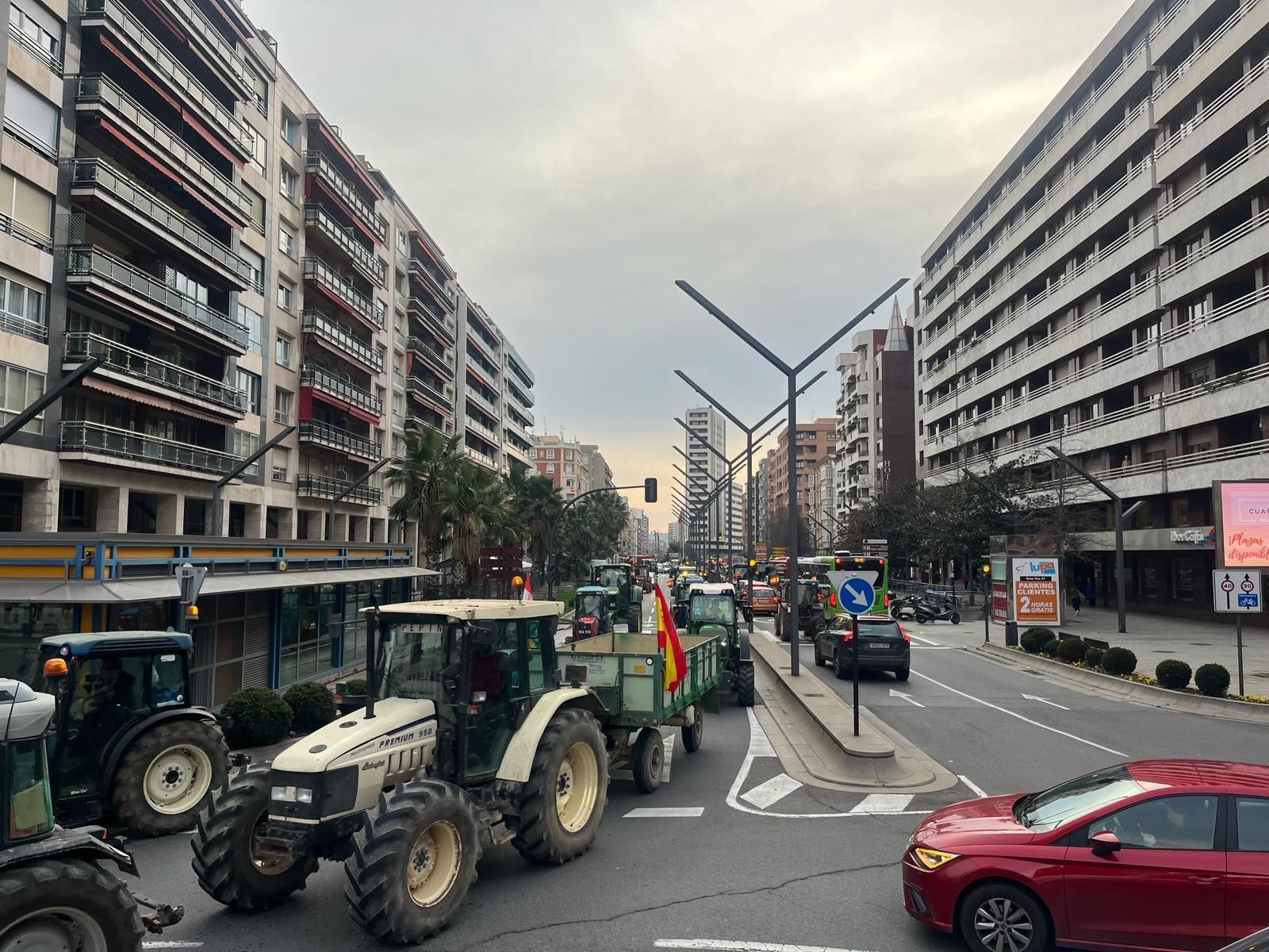 En torno a las nueve la mañana los tractores han comenzado a entrar en la ciudad ocupando principalmente uno de los sentidos de circulación de Gran Vía, de oeste a este.