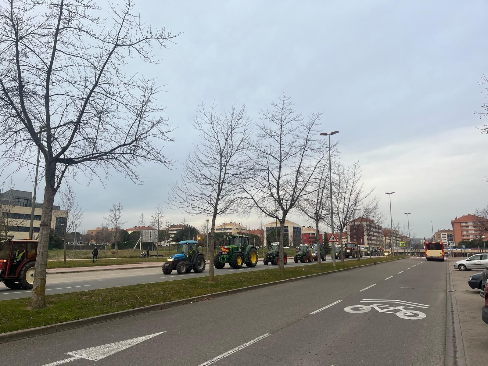 A las seis de la mañana circulaban ya los tractores por el entorno de Logroño. Para las siete las retenciones eran la tónica habitual en todos los accesos a la ciudad. Cientos de tractores circulan a lo largo de la mañana en su marcha más lenta por el entorno y las calles de Logroño. Una marcha que no ha sido autorizada, ya que no se ha presentado la solicitud en tiempo y forma, pero que se espera que sea una de las más multitudinarias hasta la fecha.