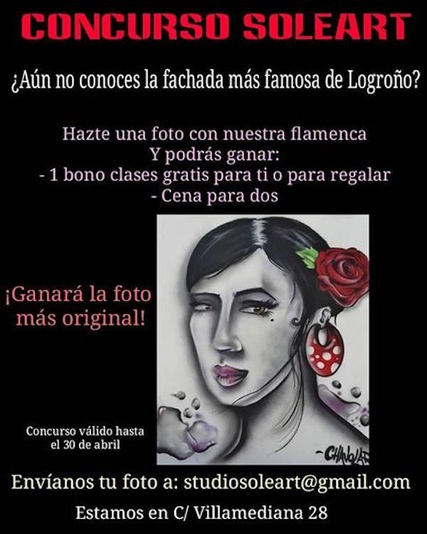 Si has paseado por la calle Villamediana de Logroño, probablemente te habrá llamado la atención una fachada con una enorme flamenca. Se trata de la entrada de Soleart, un estudio de baile y también la sede oficial de la Escuela de Flamenco de Andalucía en La Rioja. Sus propietarias, en vista del éxito de la fachada, han decidido lanzar un original concurso.