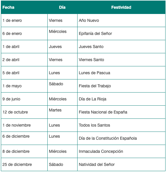 Estos son los festivos en La Rioja:
