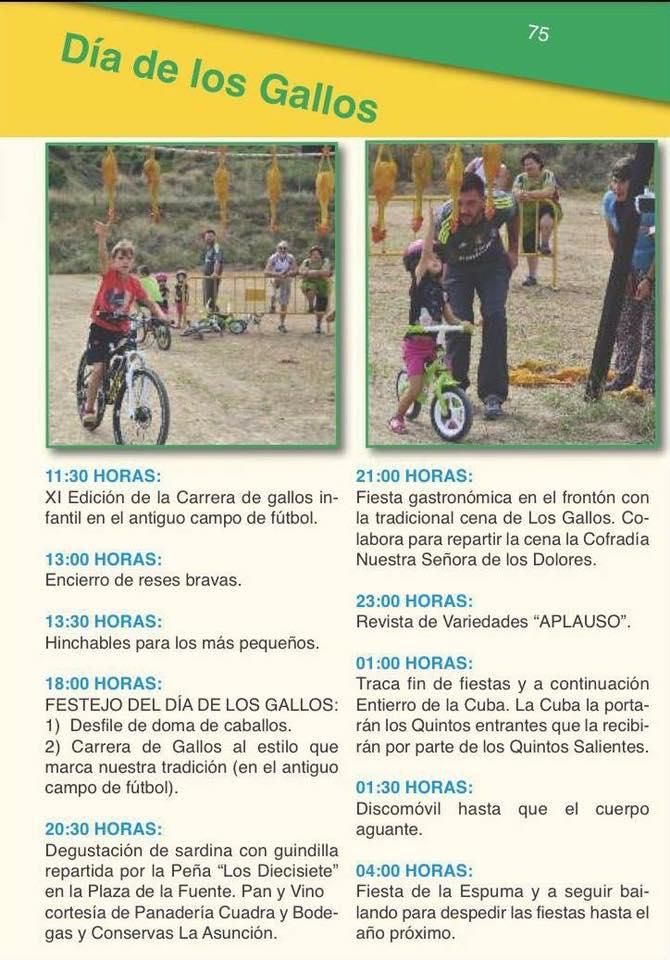 Hoy viernes 18 de agosto a las 18:30 se celebra en el campo de fútbol el tradicional “Día de los Gallos” en Nalda . El año pasado esta tradición atrajo a más de 1.000 visitantes y este año esperan repetir los mismos números ya que cae en viernes. Daniel Osés, alcalde de Nalda, explica que este día “se vive como el día grande de fiestas. Es una tradición que llena el pueblo de gente”.