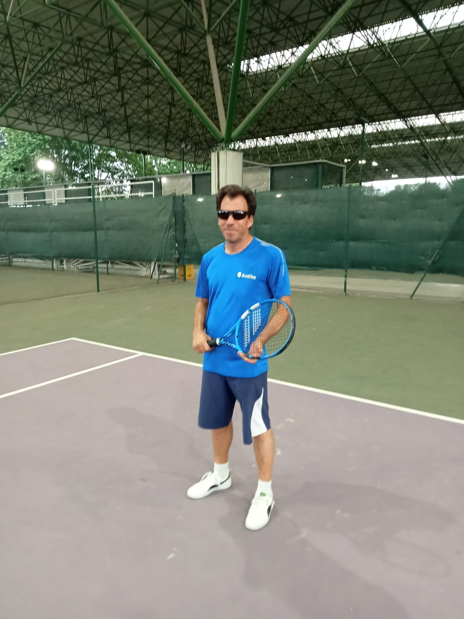 Él quería la pelota amarilla, las cuerdas, la raqueta... Y a finales del 2021, encontró la asociación Blind Tenis España. “Me facilitaron tres bolas y empecé a bajar a Las Norias con mi mujer, que también juega al tenis. Los primeros días no daba una”, recuerda.