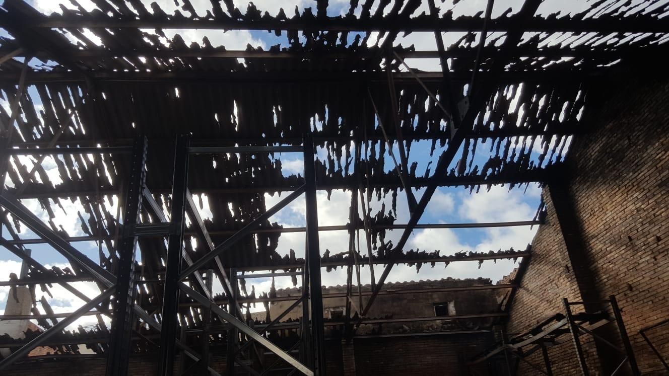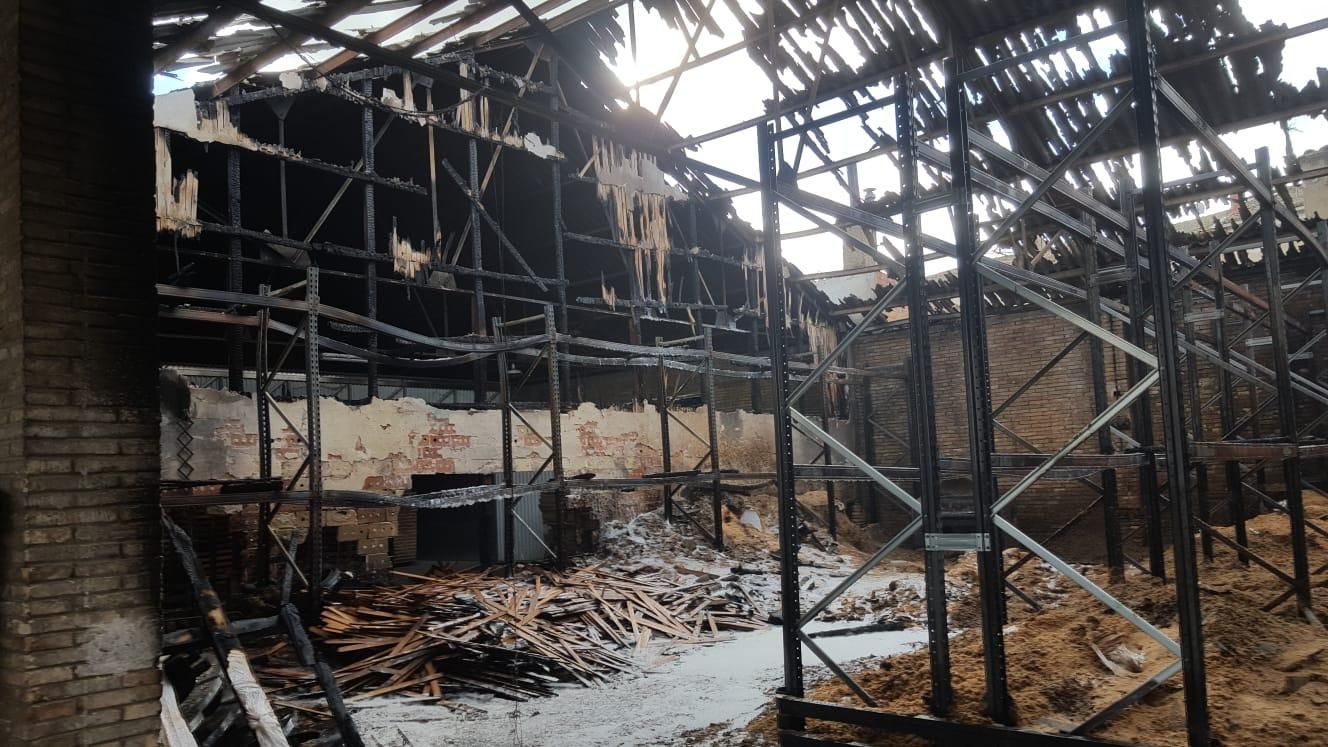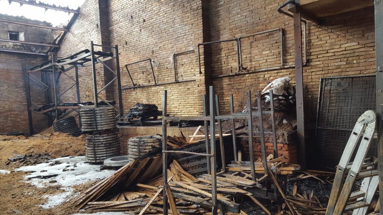 Las instalaciones de Tonelería Murúa han quedado totalmente calcinadas tras el incendio.
