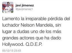 Javi Jiménez eliminó más tarde el tweet y escribió que se trataba de un 'hackeo': “Alarmado por el revuelo de tantos mensajes decir que alguien ha utilizado mi cuenta poniendo mensajes erróneos y de mal gusto,lo siento. Lo siento por aquellas personas que se hayan dado por ofendidas con esos twuits de mal gusto, D.E.P NELSON MANDELA”.