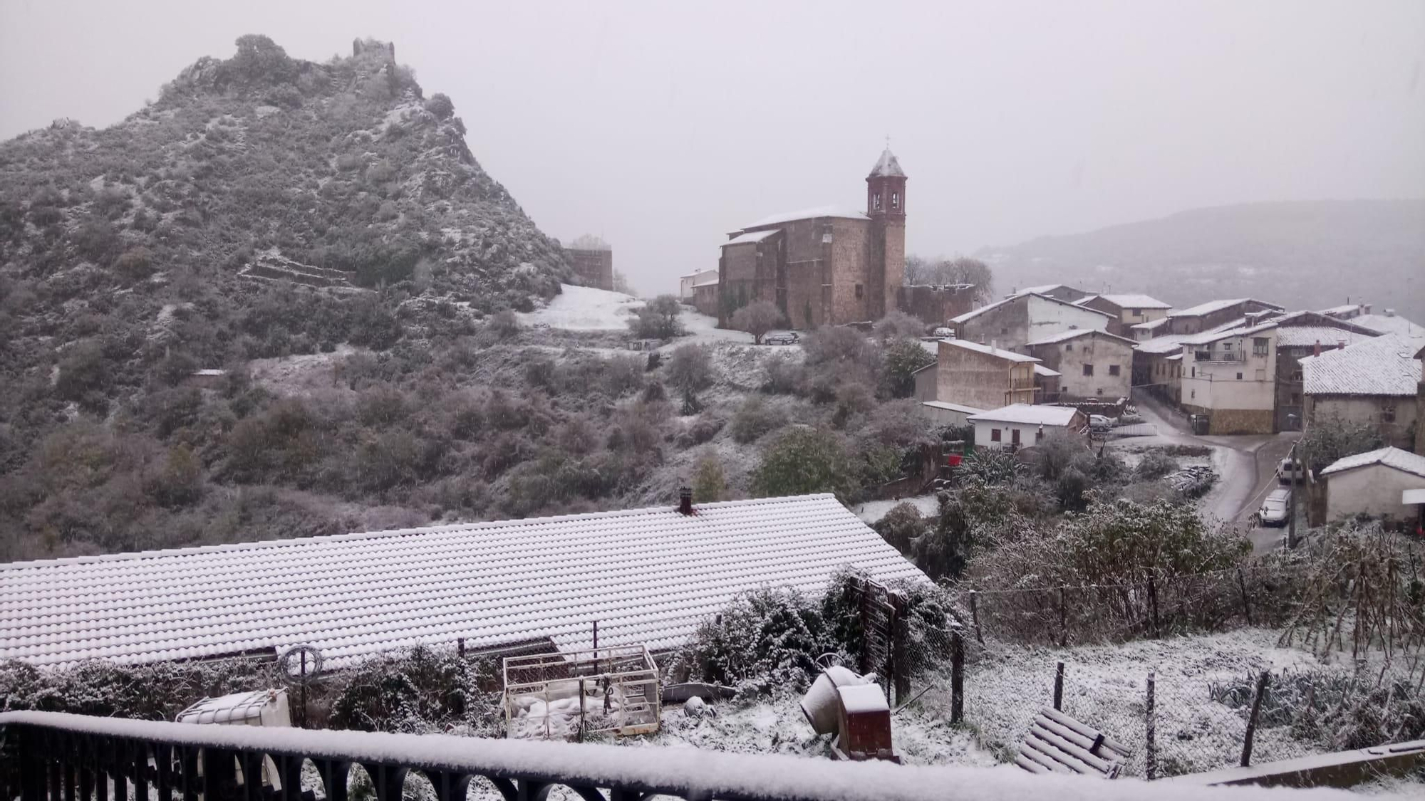 En Cameros hoy el paisaje hoy ha amanecido blanco. Como muestra la imagen, en Nieva de Cameros se han despertado con un manto blanco cubriendo los tejados y las calles y también en Laguna de Cameros (vídeo) o en El Rasillo.