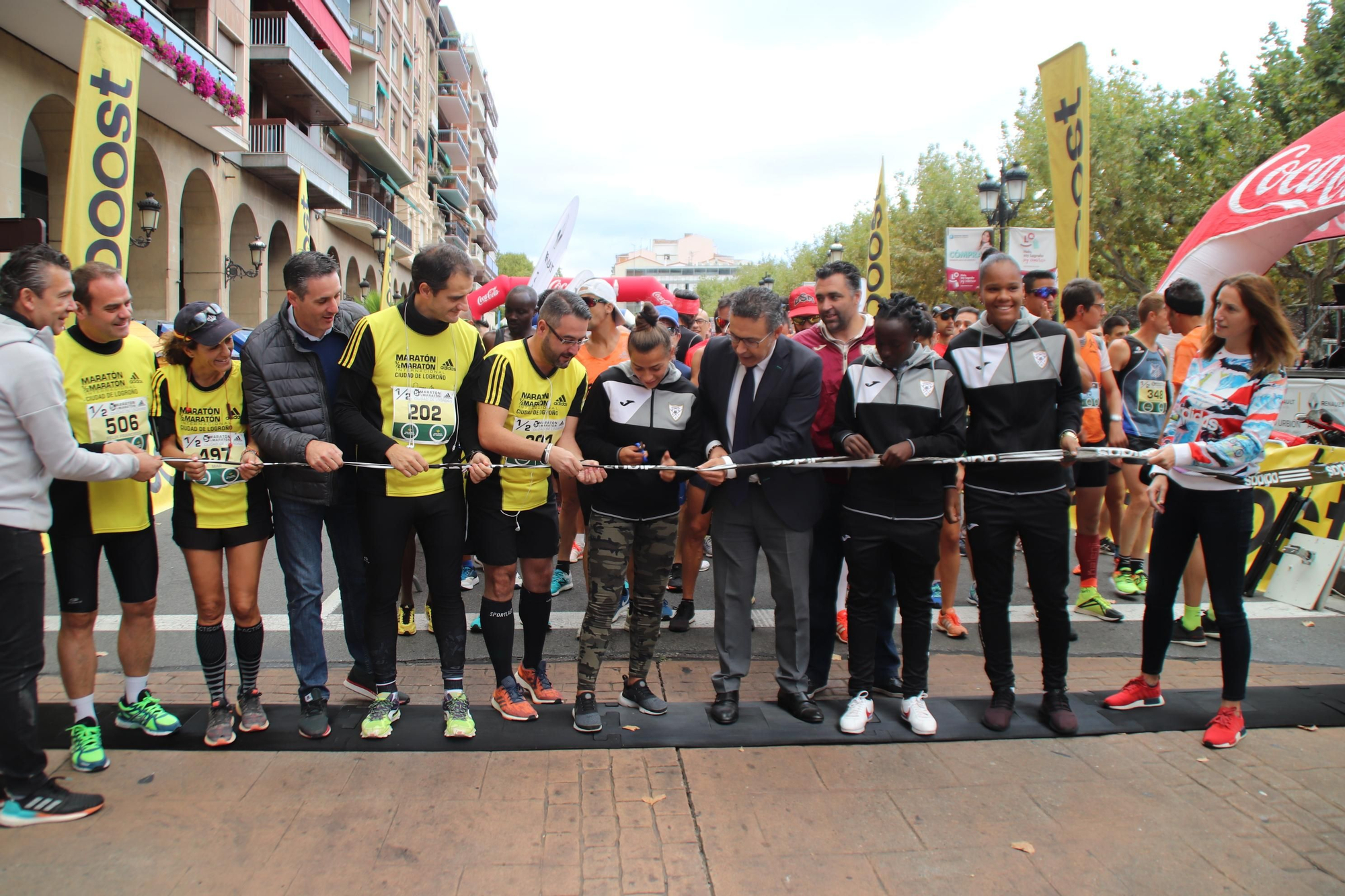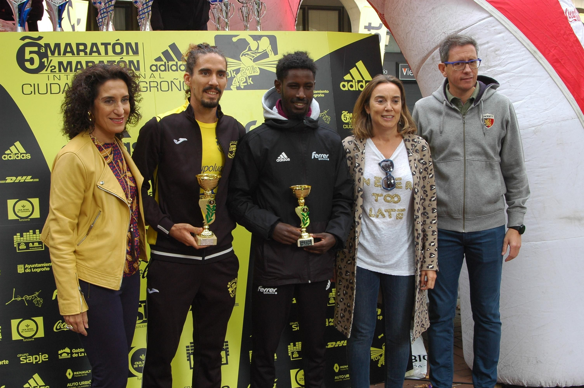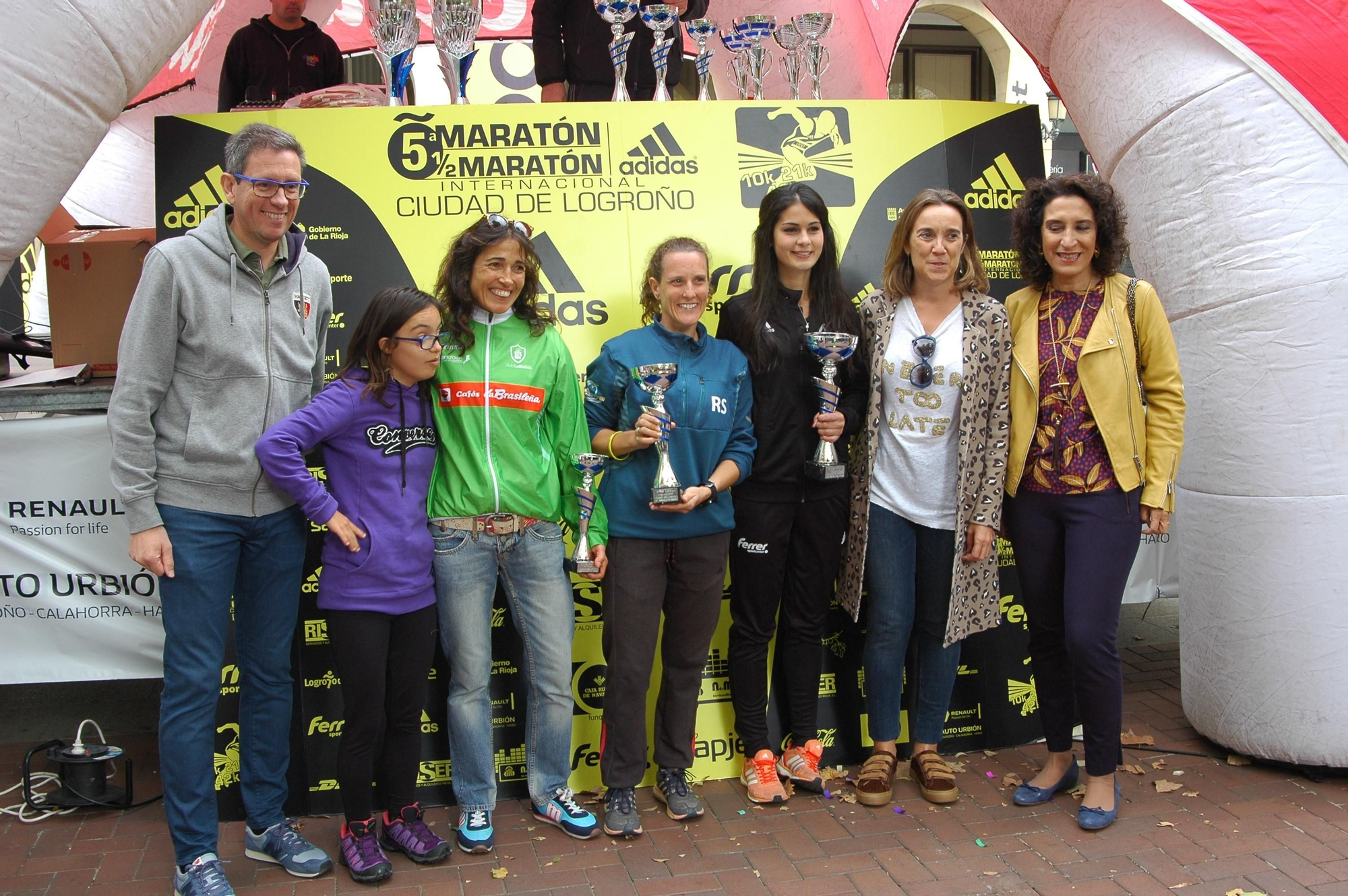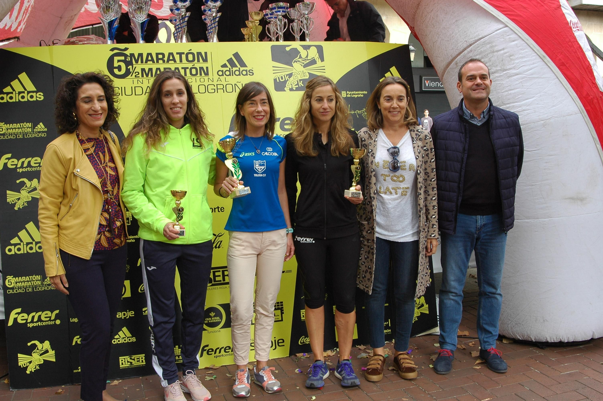 La alcaldesa de Logroño, Cuca Gamarra, ha participado en la entrega de trofeos y medallas de la V Maratón y ½ Maratón Internacional Adidas Ciudad de Logroño.