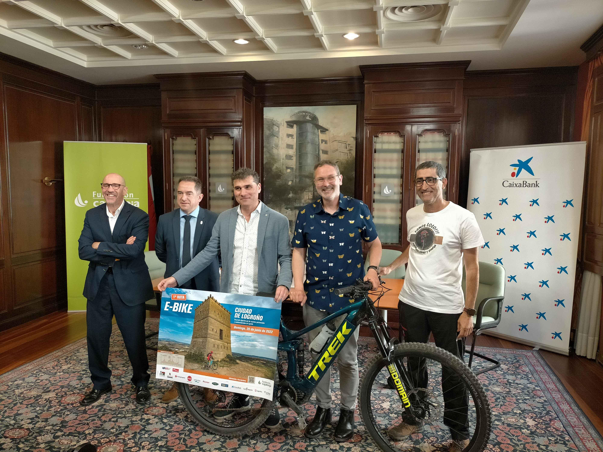 Este viernes se ha presentado en Logroño la Primera Ruta E-Bike ‘Ciudad de Logroño’ que organiza la Fundación Caja Rioja junto con el patrocinio de Logroño Deporte, La Rioja 360 Grados Avanza y CaixaBank y que se celebrará el 26 de junio. La nota informativa de la organización reza de la siguiente manera: