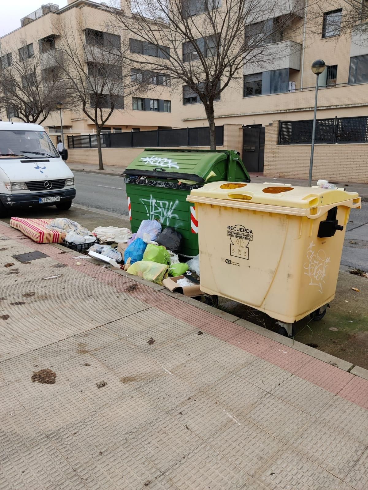 La acumulación de basura en varios contenedores de Lardero provoca el malestar del vecindario