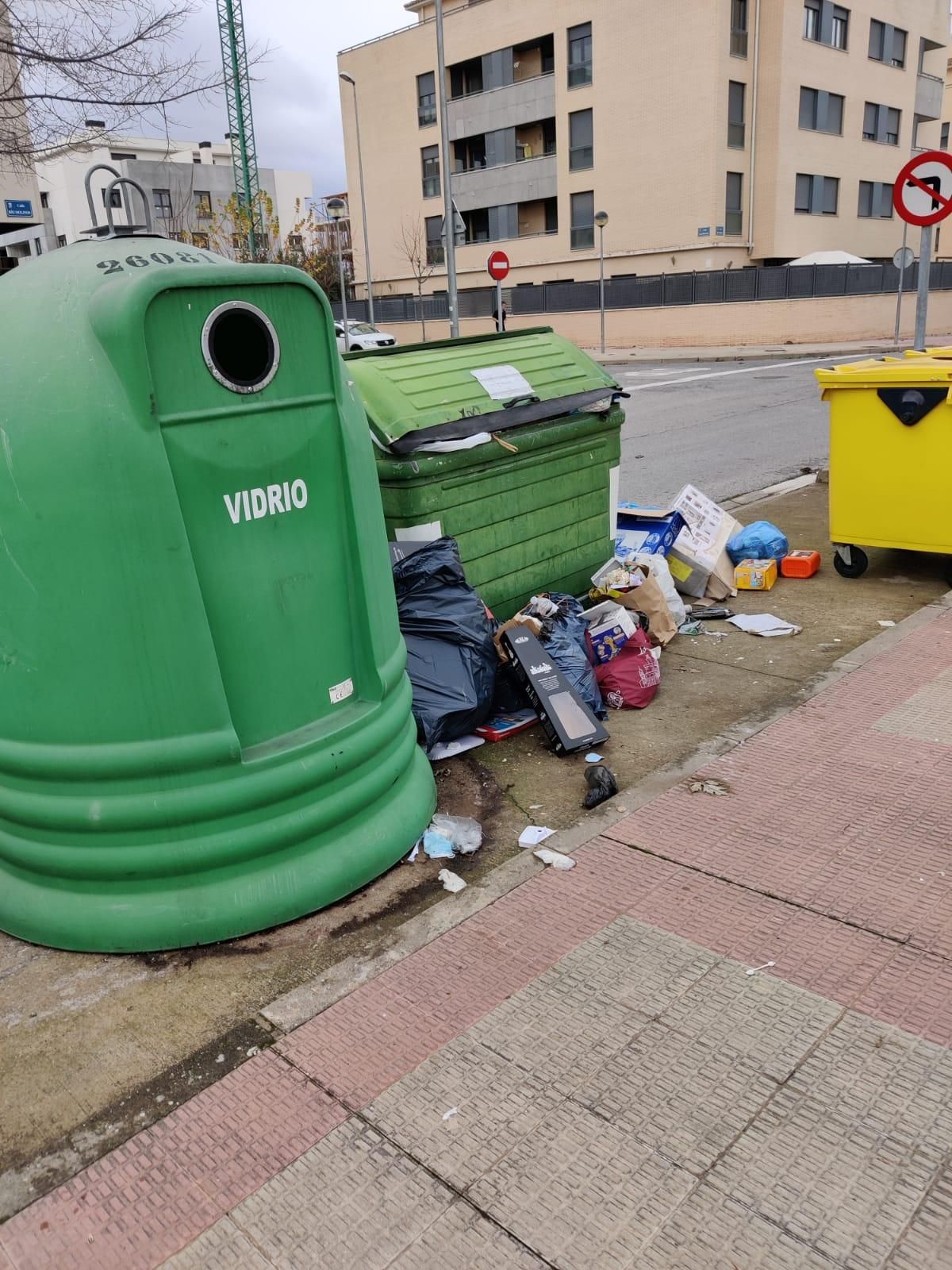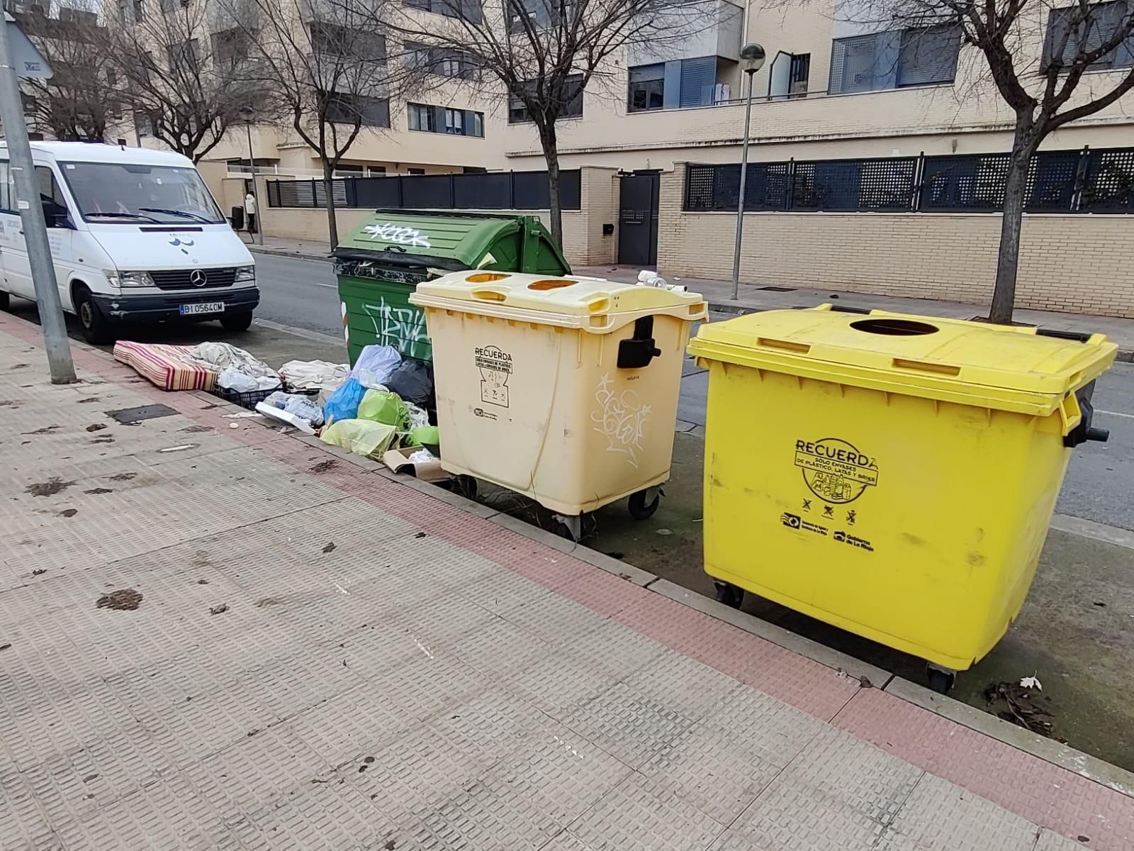 Los vecinos y vecinas del barrio de Entre Ríos de Lardero han visto cómo durante el pasado fin de semana la basura rebosaba junto a varios contenedores del barrio.
