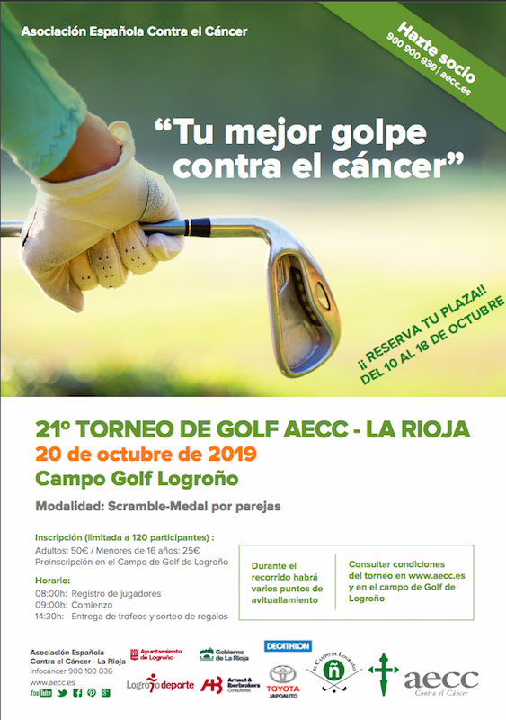 La Asociación Española contra el Cáncer (AECC) en La Rioja celebra este domingo 20 de octubre, en el Campo de Golf de Logroño, la 21ª edición de su tradicional Torneo de Golf 'Tu mejor Golpe contra el Cáncer'.