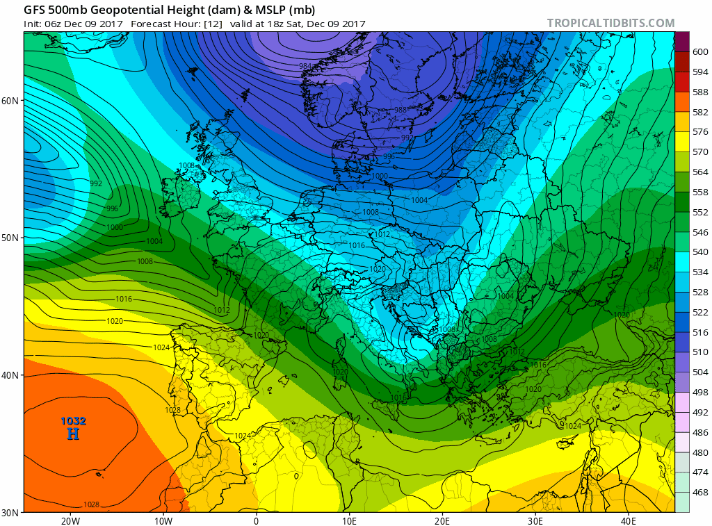 El posicionamiento del anticiclón de las Azores al oeste y sur de su posición habitual, junto con la presencia de mucho aire frío en las capas altas de la atmósfera en las costas occidentales europeas, son el combustible perfecto para que una amplia área de bajas presiones se mantenga y se vea retroalimentada por el jet stream o carretera de borrascas, que transporta pequeñas ondulaciones gérmenes de borrascas que terminan evolucionando con mucha rapidez en el centro depresionario del oeste del continente.