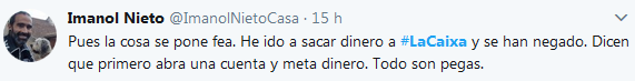 Miguel es catalán aunque lleva varios años viviendo en La Rioja. Era cliente de La Caixa hasta ayer. “Tenía aquí mis cuentas y mi hipoteca pero esta situación me ha hecho tomar la decisión de marcharme a otro banco, no por miedo a lo que pueda pasar sino porque me indigna lo que está pasando”, cuenta a las puertas de la entidad.