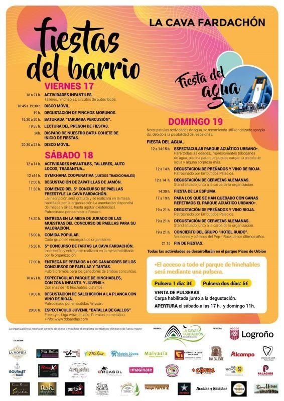 El barrio logroñés despide sus fiestas este domingo con un programa que dará comienzo a las 12:00 con una fiesta del agua y terminará a las 21:15. Así, se podrá disfrutar de degustaciones de preñados y cerveza alemana, refrescarse en un parque acuático urbano o cantar clásicos del rock con el grupo Hotel Ruido.