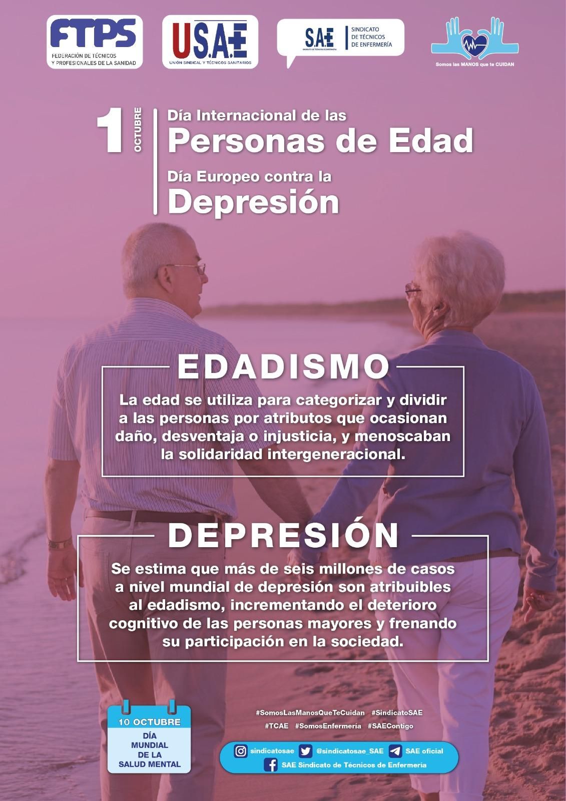El próximo domingo, 1 de octubre, se celebra el Día Internacional de las personas de edad y el Día Europeo de la Depresión. Según diversos estudios, se estima que más de seis millones de casos de depresión a nivel mundial son atribuibles al edadismo, un problema que afecta a una de cada tres personas en Europa y que surge por los estereotipos, prejuicios y discriminación que sufren las personas por motivos de su edad, afectando principalmente a los mayores, pero también a jóvenes.