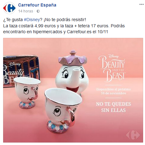 Primark fue la primera marca en poner la venta la taza de Chip hace unos meses y, cada vez que la colocaba en sus estanterías, se agotaba en cuestión de minutos. Ahora es Carrefour quien se suma a esta moda poniendo a la venta no sólo la taza sino también a su madre, la tetera.