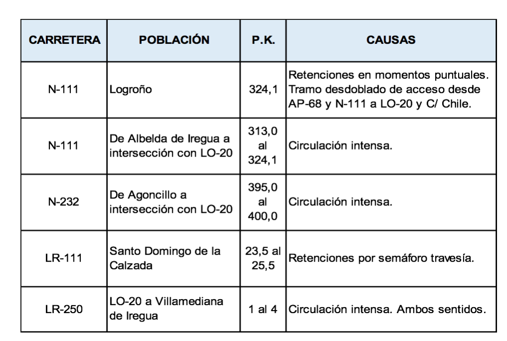 Se prevén unos 95.000 desplazamientos en La Rioja y las horas de mayor intensidad se producirán entre las 16 y las 22 horas de mañana, jueves; las 9 y las 14 horas del viernes, 6 de diciembre; y las 16 y las 22 horas del lunes, 9 de diciembre.