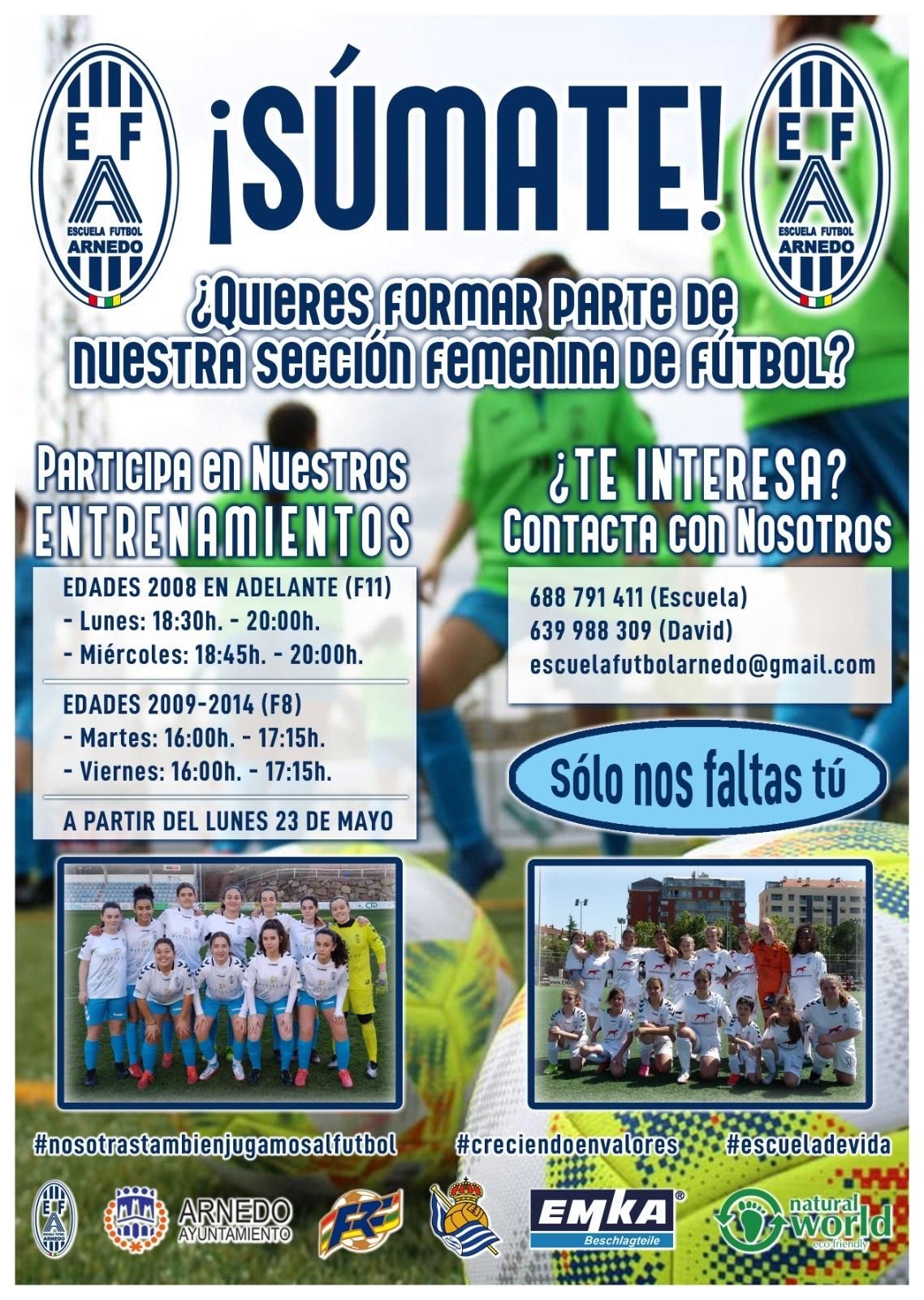 Las niñas que estén interesadas deben ponerse en contacto con la escuela y se les asignará un entrenamiento o entrenamientos a los que acudir. De este modo compartirán una sesión preparatoria con las niñas que ya pertenecen a la entidad y estarán supervisadas en todo momento por los técnicos de dichos equipos. Esta actividad es totalmente gratuita y se desarrollará en estas dos próximas semanas. Como señalaba su presidente, una iniciativa más de la Escuela de Fútbol de Arnedo que busca afianzar y aumentar su sección femenina dentro de dicha escuela.