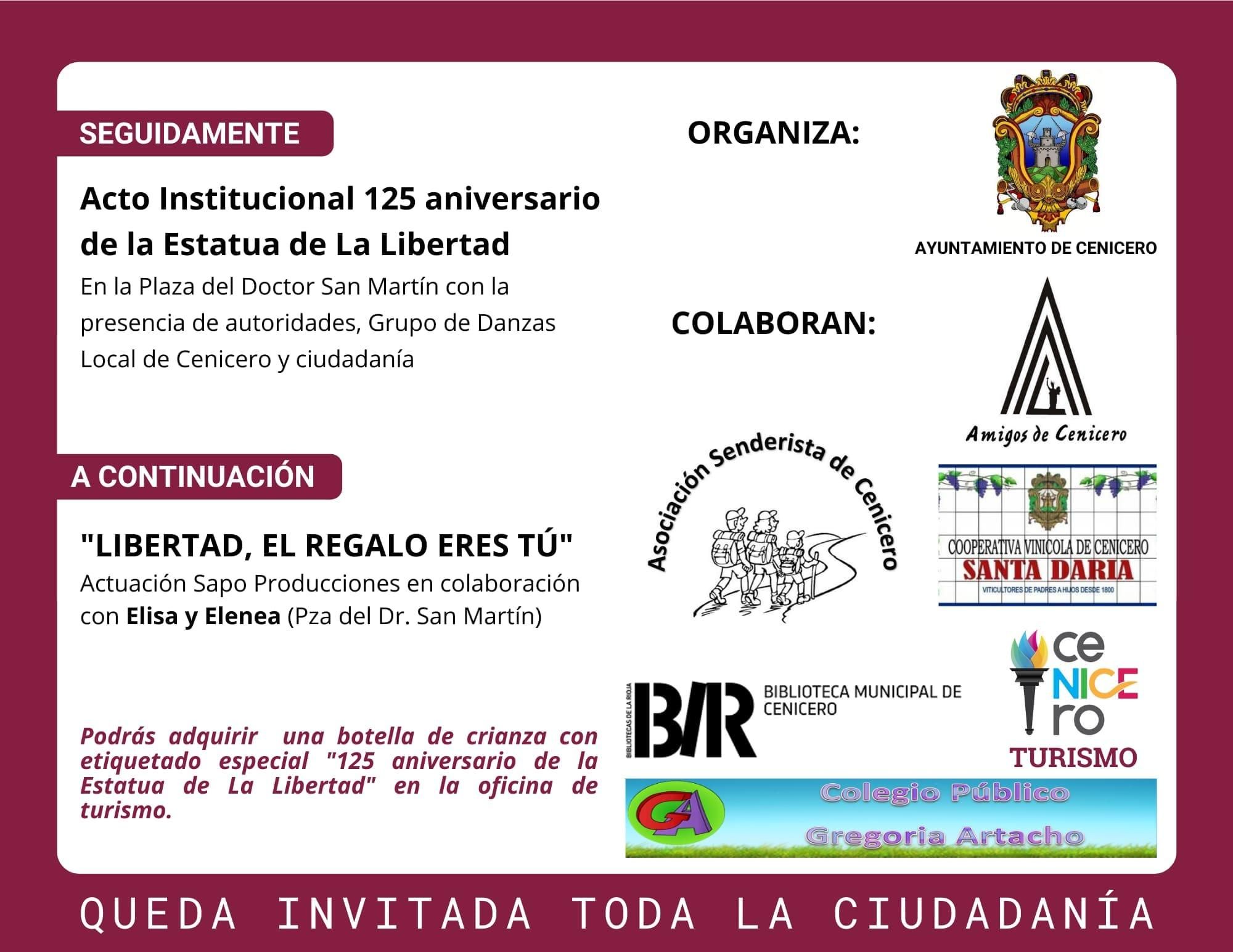 Cenicero homenajeará el aniversario de la Estatua de la Libertad el próximo jueves. Antes, este viernes desde las 19.30 horas, en el aniversario de la defensa de los Urbanos, se cumplirá con la tradición de la lectura de sus nombres y las tres vueltas alrededor de la Estatua, para terminar con una degustación de bizcocho con mistela. El domingo se ha organizado una ruta guiada siguiendo los pasos que hizo el ejército de Zumalacárregui.
