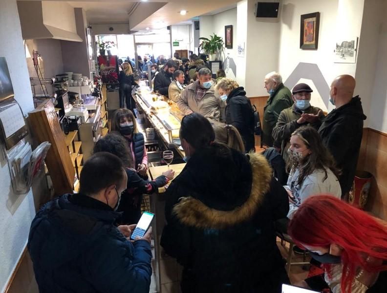 Hasta el bar se han acercado muchos de los agraciados, entre risas, brindis y abrazos.