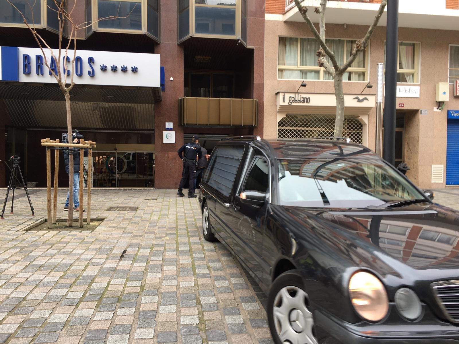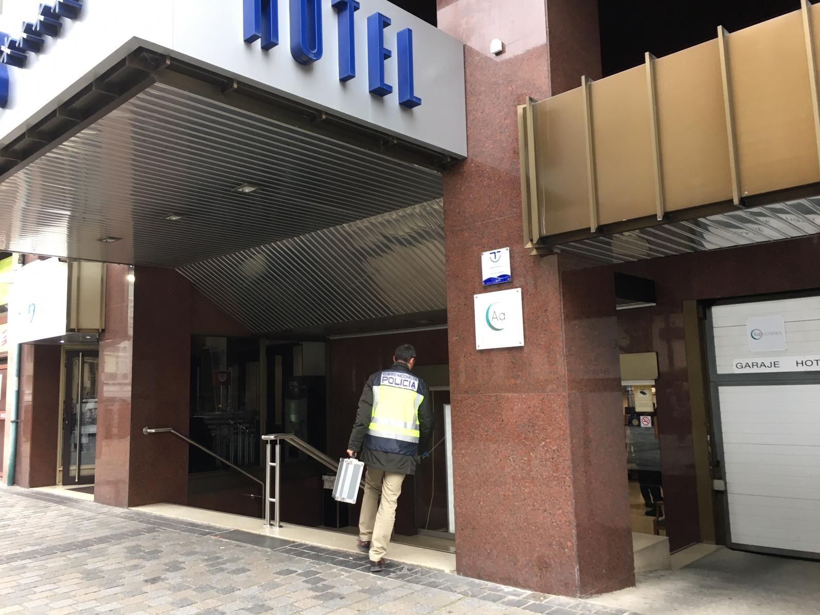 Los servicios funerarios salieron del interior del hotel hacia las 12 del mediodía. También se ha podido ver entrar y salir de establecimiento a varios agentes que portaban maletines y bolsas de viaje.