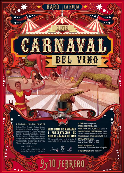 Bien podía haber sido esta la presentación del singular cóctel de carnaval y vino que ha preparado Haro este fin de semana. Se trata, precisamente, del Carnaval del Vino, que este año ha estado dedicada al circo clásico.