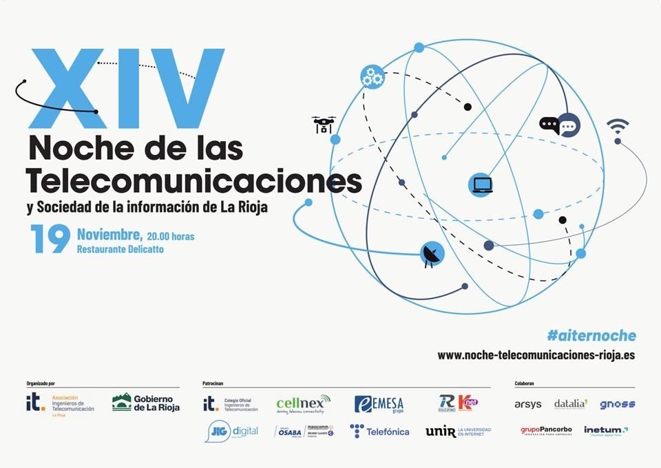 Un año más, y ya suman catorce, el Gobierno de La Rioja colabora con la Asociación de Ingenieros de Telecomunicación de La Rioja (AITER) en la entrega de sus tradicionales premios de la Noche de las Telecomunicaciones y Sociedad de la Información de La Rioja, que este año retoma su formato presencial, tras su celebración digital en 2020 por la pandemia, y se desarrollará este viernes 19 de noviembre, a partir de las 20 horas, en el restaurante Delicatto.