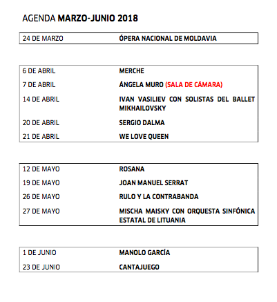 En abril, el Palacio de Congresos de La Rioja también acogerá los conciertos de Merche (6 de abril) y Ángela Muro (Sala de Cámara, 7 de abril), el ballet ‘Suite del Corsario’, escenificado por Ivan Vasiliev y solistas del Teatro Mikhailovsky (14 de abril), el concierto de Sergio Dalma (20 de abril) y el espectáculo We Love Queen (21 de abril).
