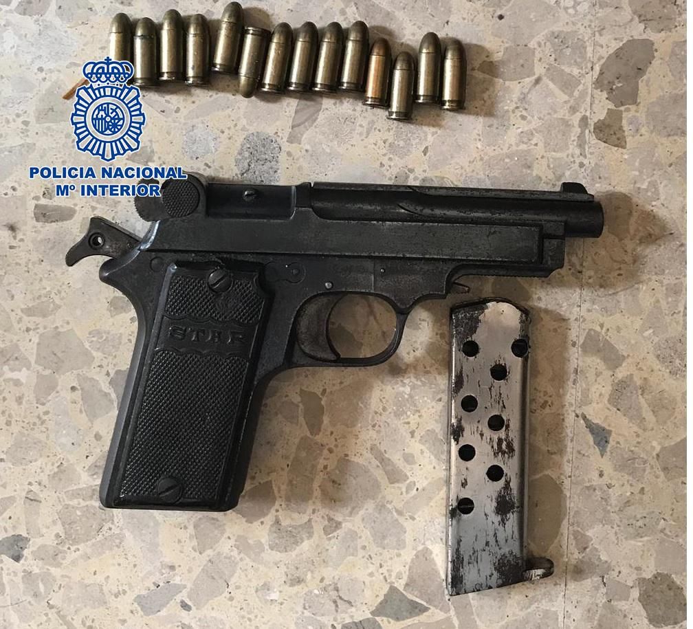 Que del mismo modo, se localiza por parte de la UDYCO un arma de fuego, de calibre 9 mm, así como munición para la misma, estando la referida pistola en perfecto estado de funcionamiento.