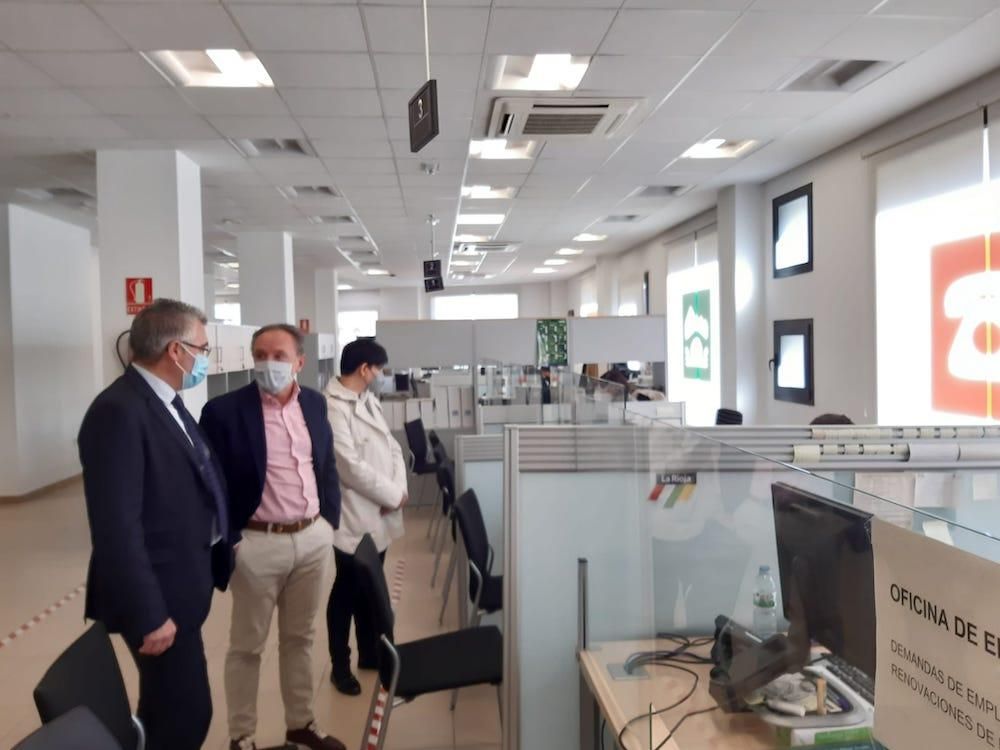 Tras la visita empresarial, Lacalzada y Bazo se han desplazado hasta la Oficina de Empleo de Calahorra, situada en la Plaza de Europa, para junto al director de la misma, Javier García, conocer la relevante labor de escucha y atención que desarrollan las siete personas que componen el equipo en esta localidad riojana. “En el Gobierno de La Rioja agradecemos el trabajo clave que desarrolláis en la mejora de las políticas activas de empleo mediante los diferentes servicios que prestáis como parte de la red de Oficinas de Empleo de La Rioja”, ha señalado el consejero.