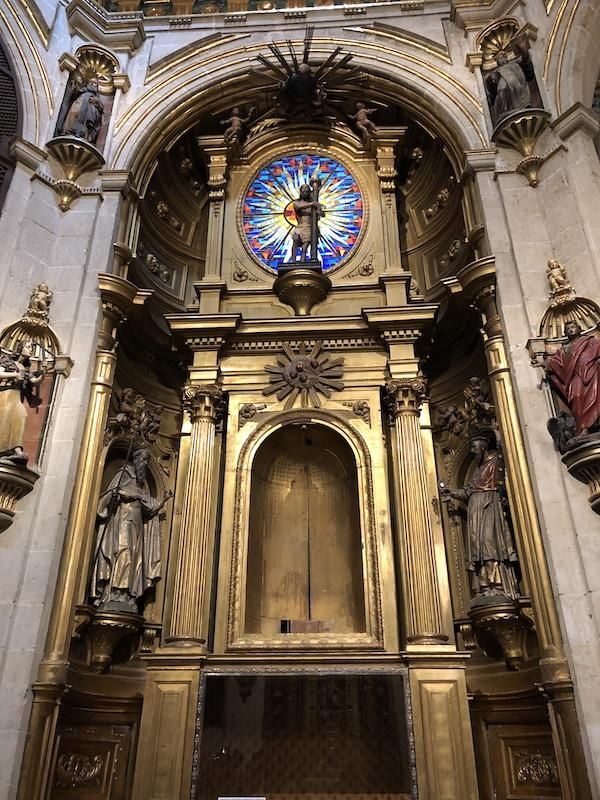 Otra de las actuaciones ha sido la sustitución del solado de granito pulido gris de los años sesenta por mármol de Espejón color arena en dos tonos, siguiendo un diseño más congruente con la planta octogonal de la capilla y la consolidación de los retablos de Santa Lucía y San Bernabé, muy afectados por el ataque de termitas.
