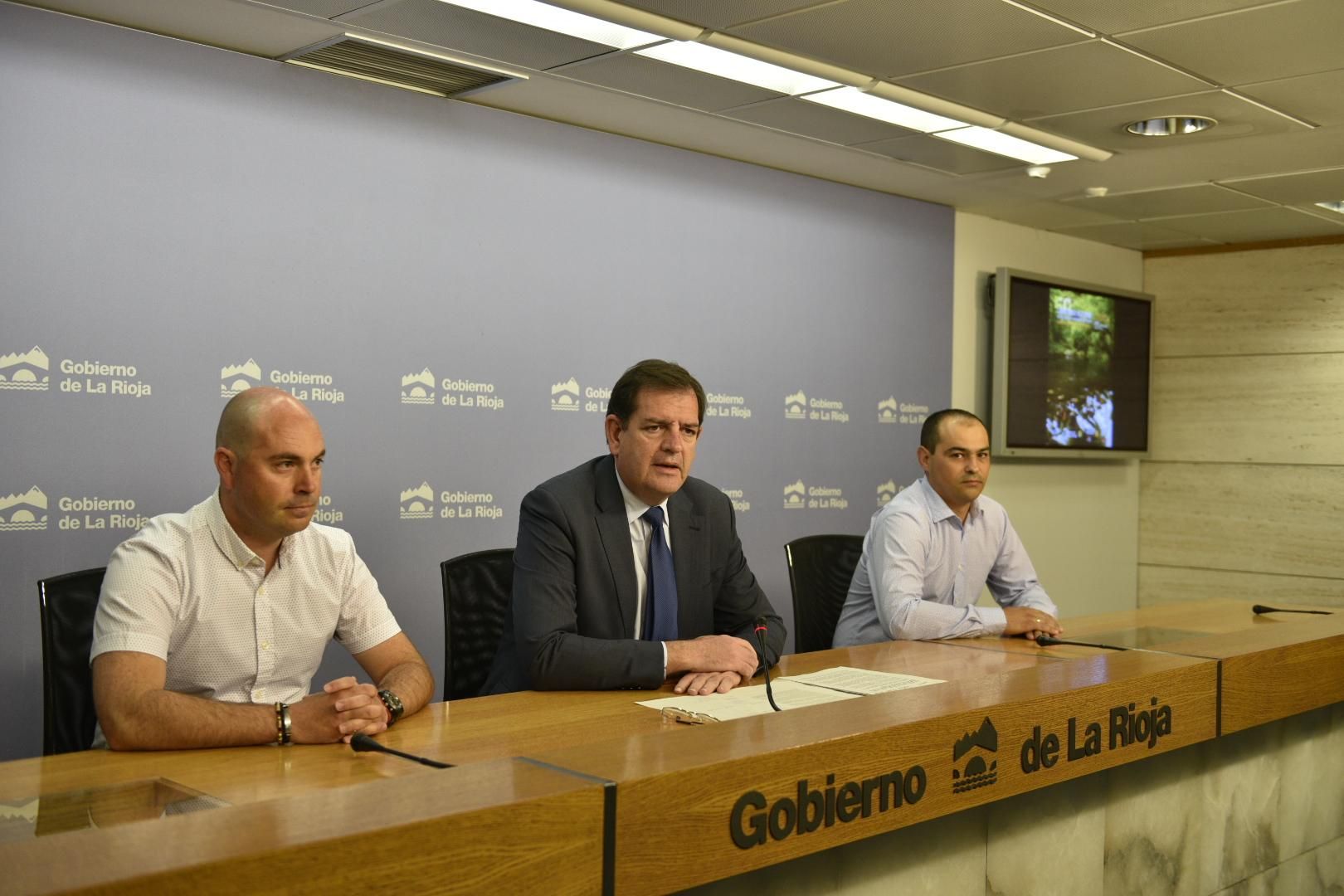 El consejero de Agricultura, Ganadería y Medio Ambiente, Iñigo Nagore, el presidente y el secretario de la Federación Riojana de Pesca, Daniel Azofra y Álvaro Lozano, respectivamente, han presentado hoy esta importante convocatoria deportiva que regresa de nuevo a aguas riojanas “tras el éxito obtenido en anteriores convocatorias celebradas en La Rioja, tanto por la participación, como por las capturas y las zonas deportivas, algo que ha llevado a la Federación Española a apostar de nuevo por la comunidad autónoma para acoger este evento de interés nacional”.