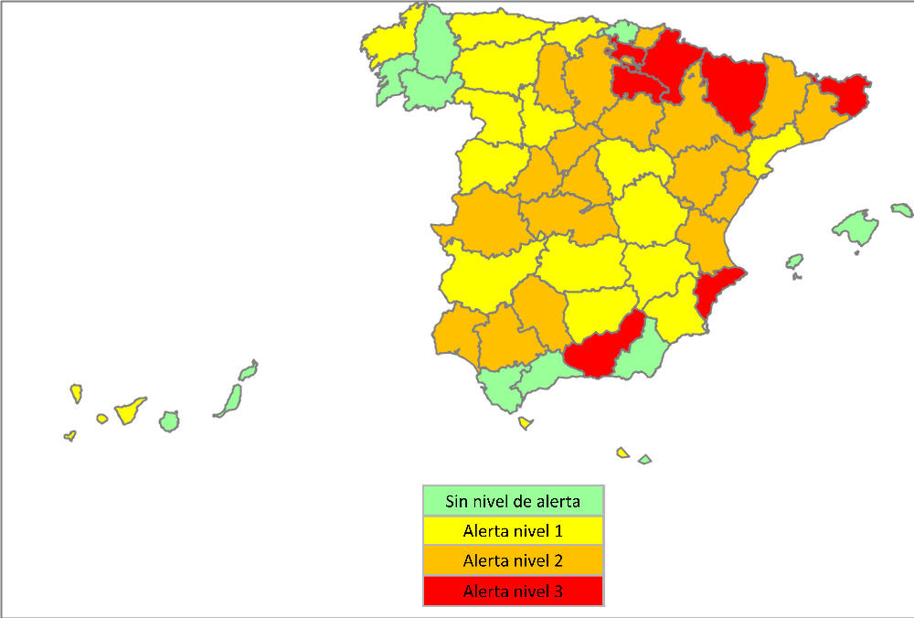 Hoy están en nivel 3 de alerta por calor (rojo) Álava, Alicante, Girona, Granada, Huesca, La Rioja y Navarra.