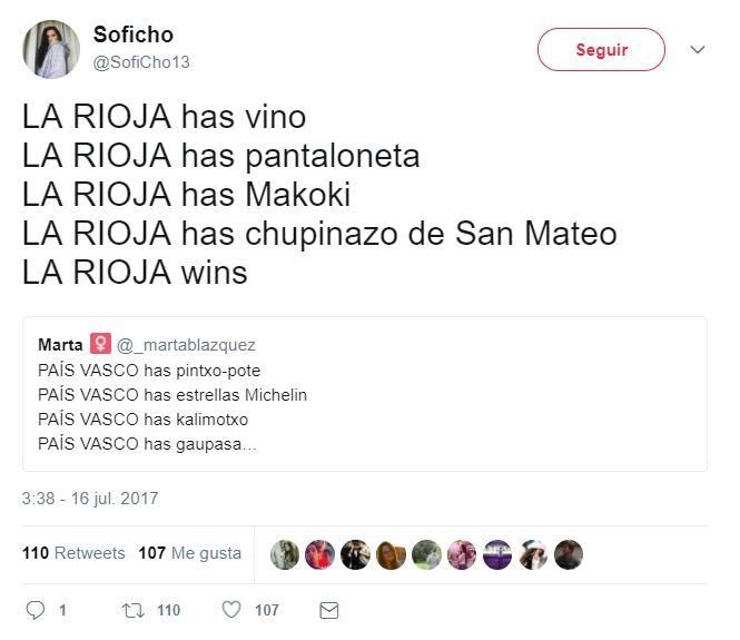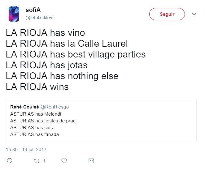 En los últimos días se ha movido un reto en Twitter, donde muchos usuarios han explicado por qué su comunidad o ciudad es la mejor. Según indica el diario El País, el juego consiste en tuitear con la siguiente estructura: nombre de la región o municipio + has (tiene en inglés) + cosa de la que presumir -o de la que bromear-. Así, se exponen varios argumentos con orgullo o ironía, pero siempre con la misma conclusión; mi comunidad o ciudad wins (gana).