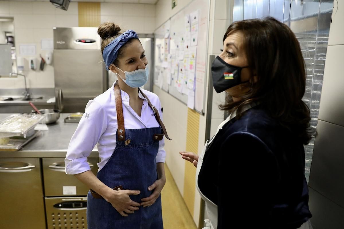 La presidenta del Gobierno de La Rioja, Concha Andreu, y la consejera de Agricultura, Ganadería, Mundo Rural, Territorio y Población, Eva Hita, han participado en esta propuesta gastronómica ‘a la riojana’, que se engloba en la presencia de La Rioja en Madrid con motivo del 20 aniversario del congreso Madrid Fusión Alimentos de España.