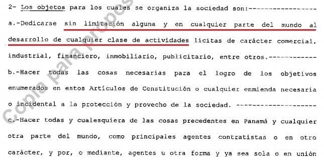 El objeto social de la empresa engloba cualquier tipo de actividad en cualquier lugar del mundo: