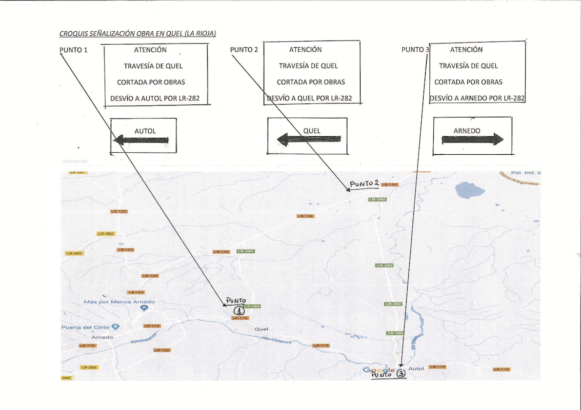 Para el tráfico ligero, el desvío se realizará por las calles de la localidad, mientras que para los vehículos pesados de más de 3.500 kilogramos, el itinerario alternativo se realizará por la carretera LR-282, de la carretera LR-134 hasta Autol.