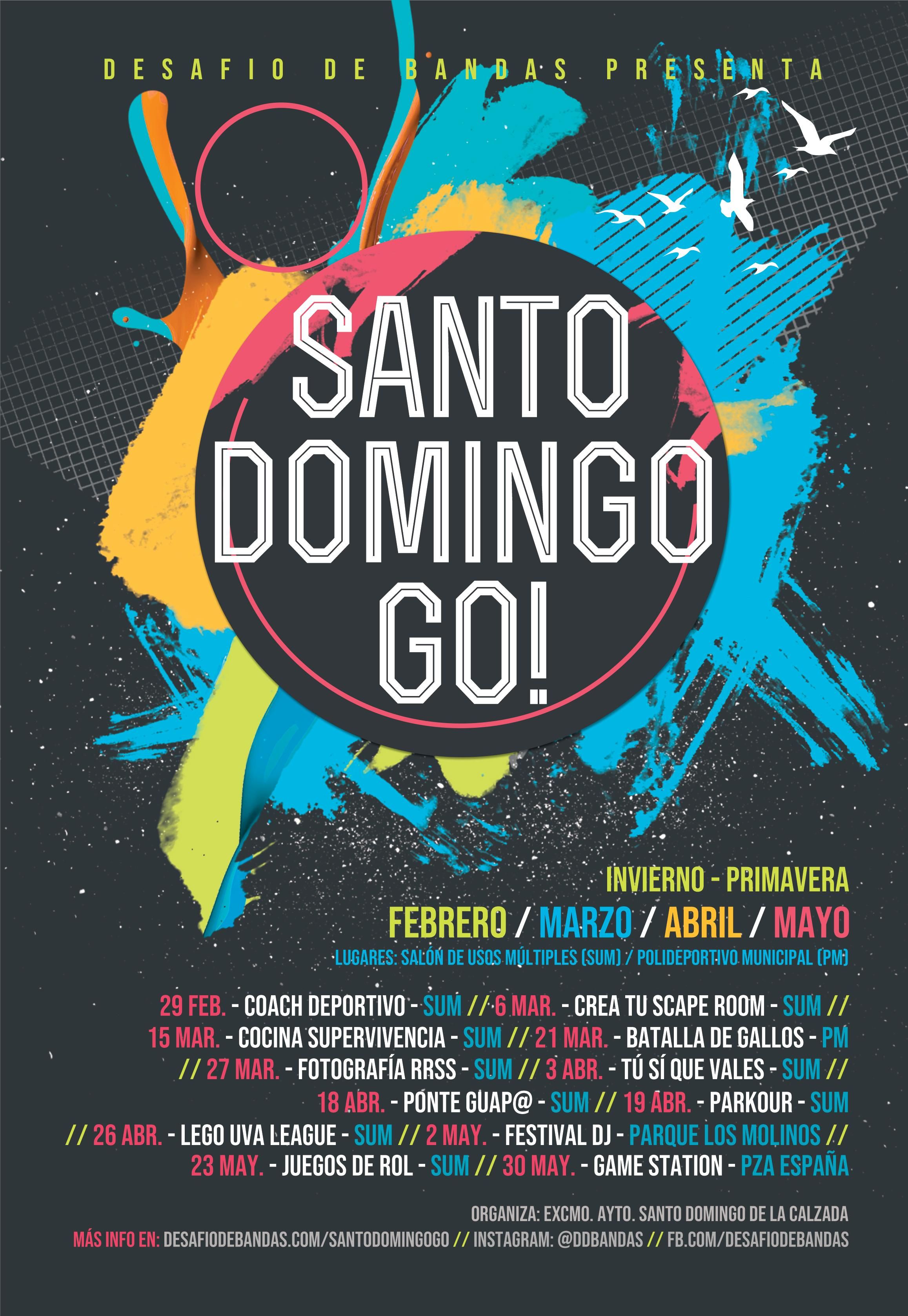 Por lo tanto, el “Santo Domingo Go!” consistirá en varias jornadas que se apoyan en fiestas temáticas, multijuegos, e-games, talleres de cocina, estética, creación de scape room y grandes eventos como batallas de gallos y festival de djs, que contarán con la participación de numerosos artistas locales, regionales e incluso de talla nacional, sirviendo de lugar de interés para jóvenes de la localidad y localidades próximas.