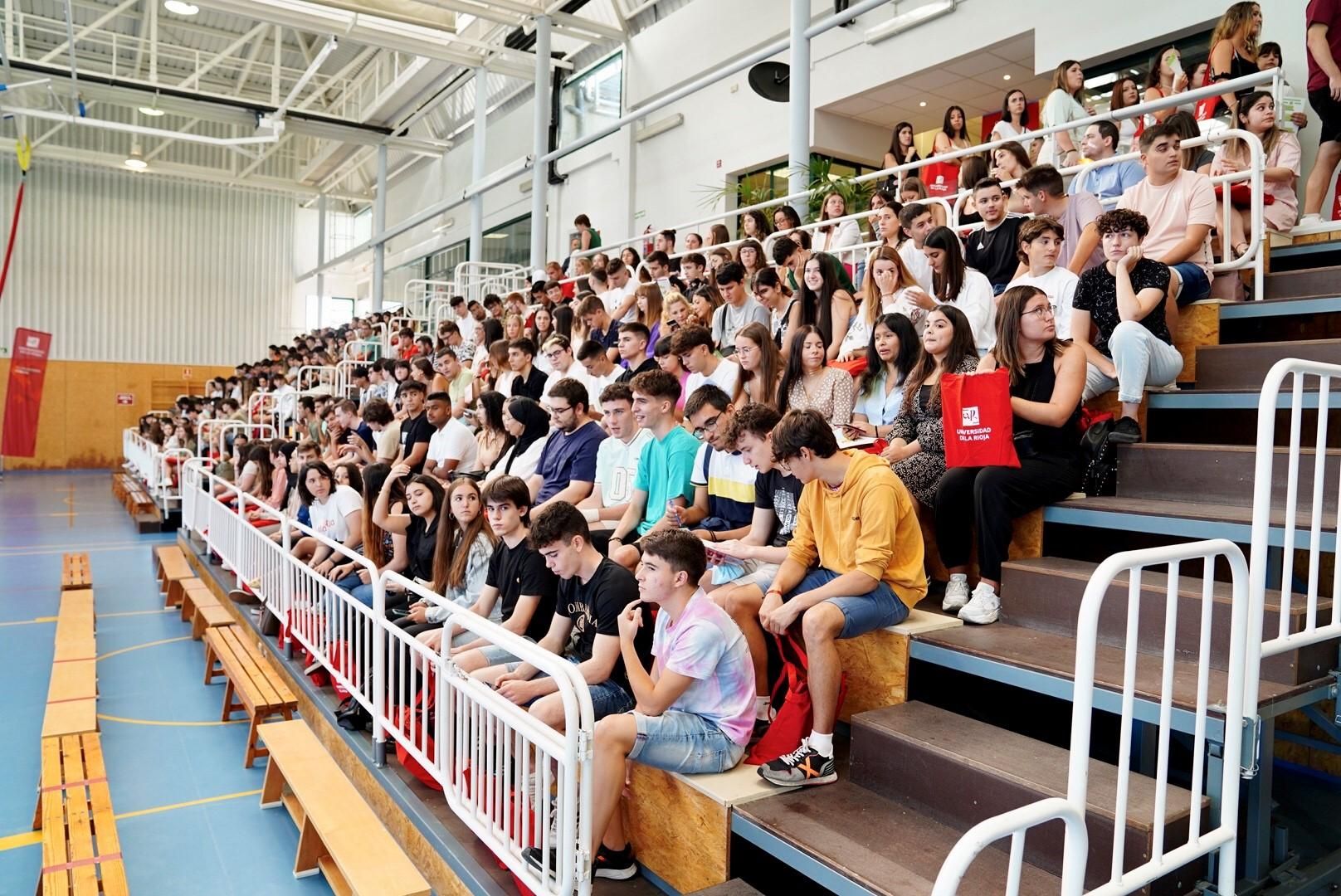 El Polideportivo Universitario acoge esta mañana la Jornada de Bienvenida a los nuevos estudiantes que este curso 2022-2023 iniciarán sus estudios de Grado en la Universidad de La Rioja. El inicio de las clases está programado para el próximo lunes, 12 de septiembre.