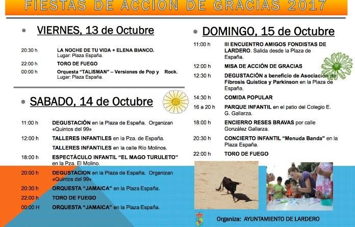 Lardero será una visita obligada durante el próximo fin de semana. Y es que los días 13, 14 y 15 de octubre celebran las Fiestas de Acción de Gracias, unos días para los que el Ayuntamiento de la localidad ha diseñado un completo programa de actividades.
