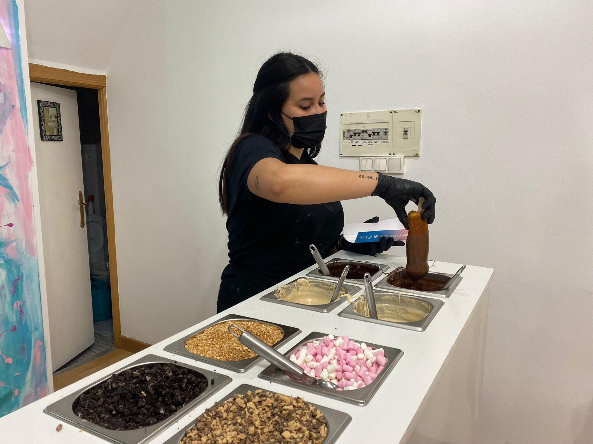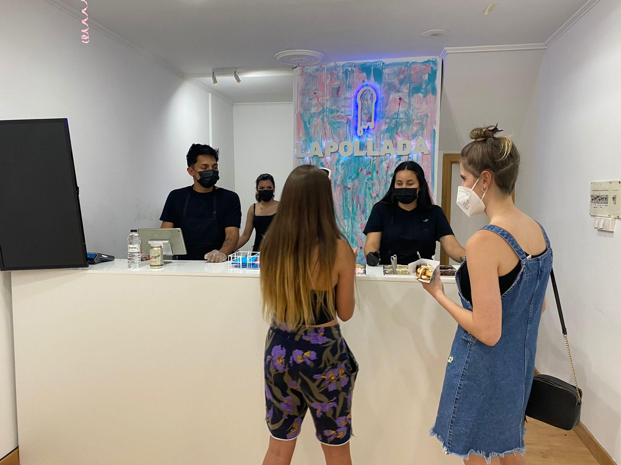 Se sirve en 'La Pollada', un pequeño local que acaba de abrir en la calle Sagasta y que este sábado tenía en la puerta una larga fila de adolescenstes dispuestos a probar este peculiar concepto de dulce, que se encuentra también en Madrid, Valencia, Canarias o Barcelona.