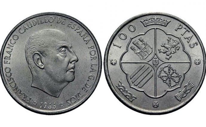 100 Pesetas de 1966. Las monedas de 100 pesetas con el 9 de forma recta pueden valer hasta 400 euros.
